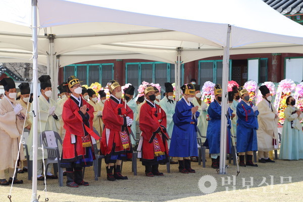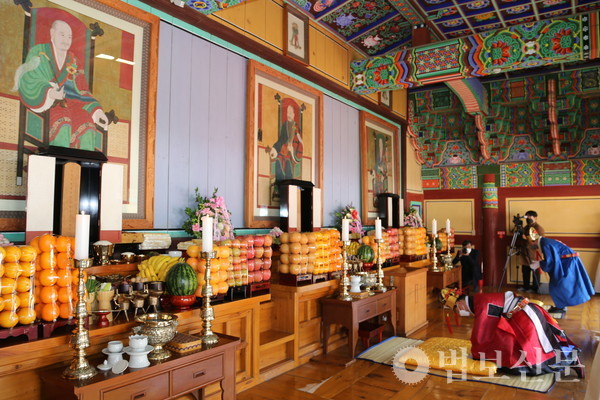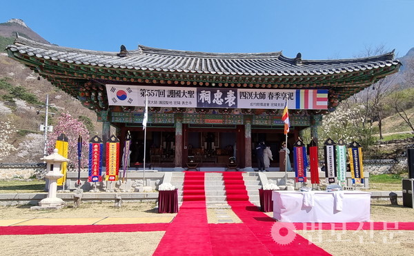 표충사(주지 진각 스님)는 4월4일 경내 표충사당에서 ‘제557회 사명대사 춘계향사’를 봉행했다. 이날 법석은 불교식 추모재와 유교식 제향으로 서산, 사명, 기허 대사의 호국 정신을 기리기 위해 마련됐다. 의식은 명종 5타, 삼귀의, 반야심경, 종사영반, 헌다, 헌화, 유교제향, 추모사, 인사말, 사홍서원으로 진행됐다.