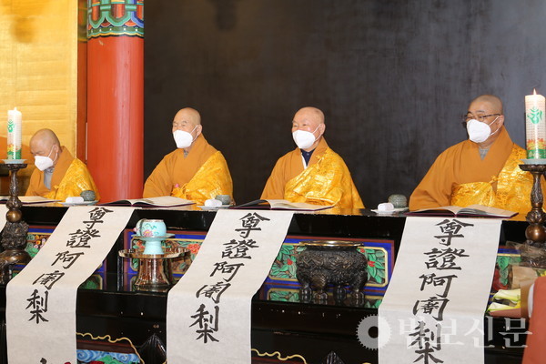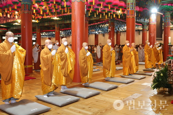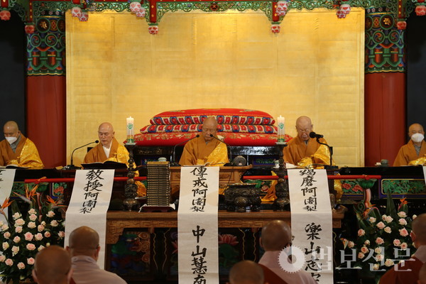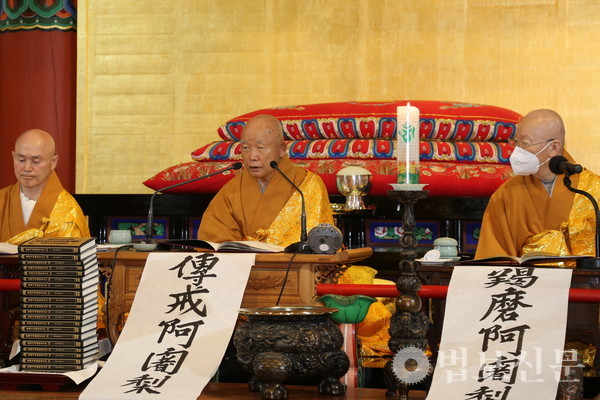 영축총림 통도사가 불기 2566년 보살계 수계산림을 원만 회향했다. 방역 수칙을 준수하며 3일 동안 삼사칠증사 스님들의 증명 아래 보살계를 받아 지닌 불자들은 지계를 실천하고 보리심을 발하는 원력 보살의 행을 서원했다.