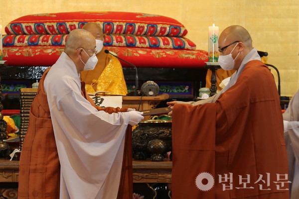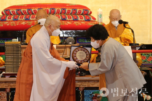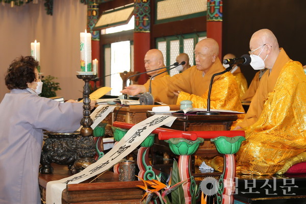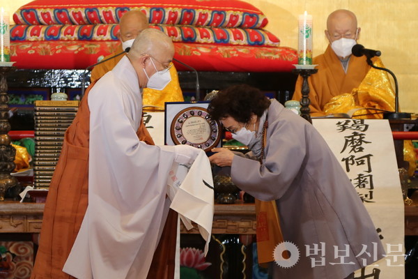 특히 이 자리에서는 통도사 재적 학인 스님들을 위한 영축총림 장학금 수여식과 10회 이상 보살계를 받은 불자들을 격려하는 성만패 및 메달 증정식도 봉행됐다. 이번 영축총림 장학금은 영축율학승가대학원장 성주, 통도사승가대학 정혜 스님을 비롯한 39명의 스님에게 총 3,180만 원이 전달됐다.