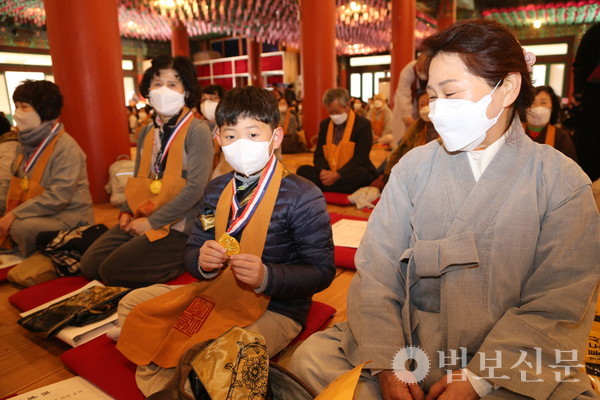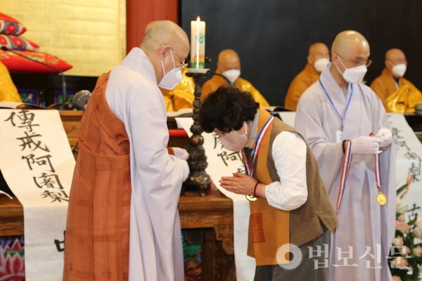 보살계 45회 성만패는 황정련(대원심) 보살, 35회 성만패는 박수연(관음화) 보살, 25회 성만패는 정덕자(지성월), 홍화순(무량심), 이복림(여래성) 보살에게 각각 수여됐다. 또 20회 수계자 6명, 15회 수계자 18명, 10회 수계자 24명에게는 각각 기념 매달이 전달됐다. 10회 수계자 중에는 13살의 김현재(보애심주) 군도 포함돼 눈길을 끌었다.