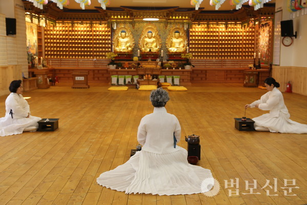 경남 김해 도심포교도량 바라밀선원이 선차실(禪茶室) 개원 1주년을 기념해 헌다의식과 차 명상을 체험하는 법석을 마련했다.