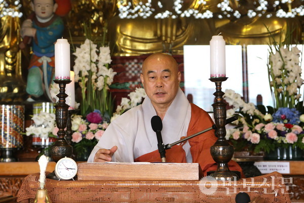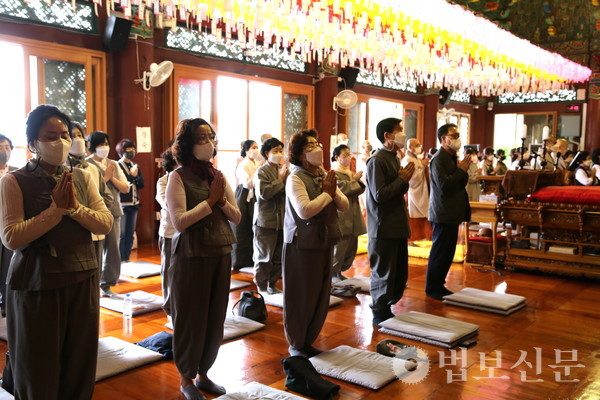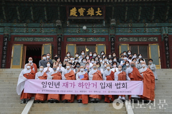 조계종부산연합회(회장 원허 스님)는 5월13일 부산 혜원정사에서 ‘불기 2566년 임인년 재가 하안거 수행 입재법회’를 봉행했다. 이번 재가 하안거에는 조계종부산연합회 회원사찰 11곳에서 800여 명이 동참을 신청한 가운데 ‘묘법연화경’ 사경 수행을 제안하며 불자들의 정진을 당부했다. 재가안거 수행 기간은 5월15일부터 7월13일까지 60일 동안 진행된다.
