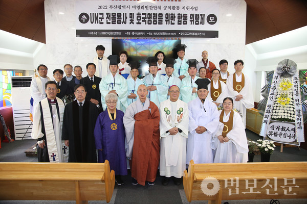 부산종교인평화회의(대표회장 정산 스님)는 6월24일 부산 남구 UN기념공원 추모관에서 ‘2022 UN군 전몰장병 및 호국영령을 위한 합동위령제’를 봉행했다. 부산종교인평화회의가 주최·주관하고 부산광역시가 후원한 이 자리는 부산의 7대 종교 지도자들과 신도들이 함께 각 종교의식으로 유엔공원에 안장된 12개국 2300여 명의 UN참전국 전몰장병의 넋을 위로하기 위해 마련됐다.
