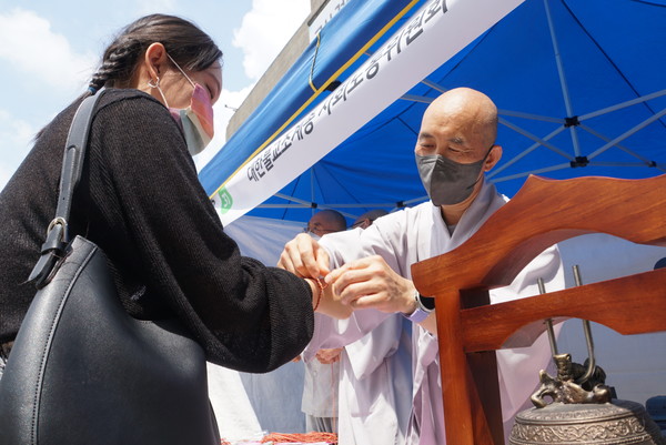 사회노동위원회 스님들은 ‘차별없는 세상 우리가 부처님’이라고 적힌 연꽃 부채와 오색실을 엮어 만든 팔찌를 선물했다. 참석자들은 스님들이 직접 손목에 묶어주는 팔찌를 받기 위해 길게 줄을 서기도 했다. 이날 사노위가 준비한 부채는 5000개, 팔찌는 2000여개다. 특히 부스 앞에 설치된 법고 체험장에서 발걸음을 멈춘 참석자들은 경쾌한 북소리에 맞춰 춤을 추며 축제를 즐겼다.