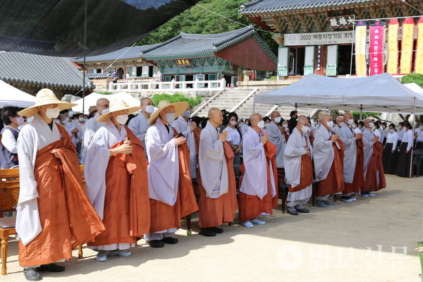 이날 금정총림 범어사 방장 지유 스님은 법어에서 “깨달음의 지혜가 문수며 깨달음의 행동을 하는 것이 보현, 자비심으로 중생을 제도하고자 하는 마음이 관세음보살이며 모든 중생이 성불하기 전에는 절대 편안하게 있지 않겠다는 원력이 지장보살”이라며 “한마음 속에 모든 보살의 원력을 동시에 갖추고 있음을 믿고 스스로 일상생활 속에서 보살의 실천을 이어가길 바란다”고 당부했다.