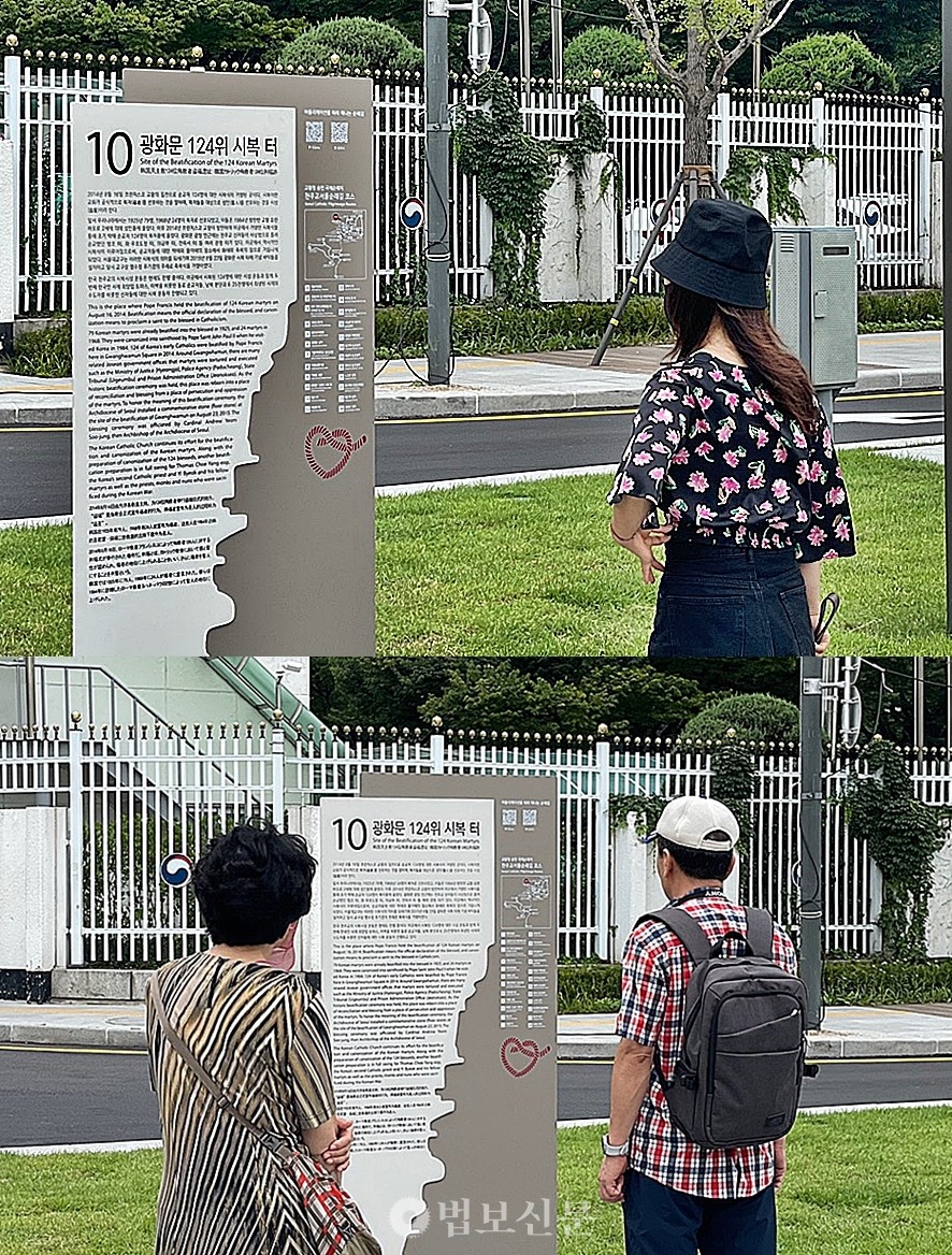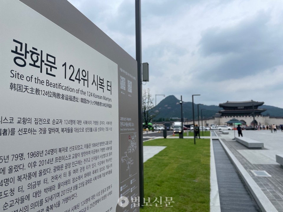 그러나 광화문광장에 있는 안내 간판은 ‘광화문 124위 시복 터’로 마치 가톨릭 시복식이 광화문 역사에서 큰 비중을 차지하고 있는 것 같은 인상을 심어준다. 시복식은 가톨릭에서 모범이 되는 신앙인을 복자(福者)로 인정하는 의식이다.