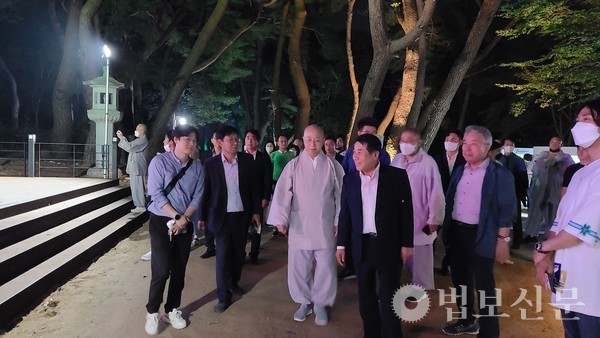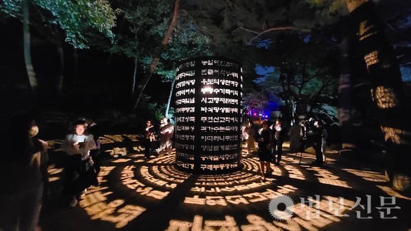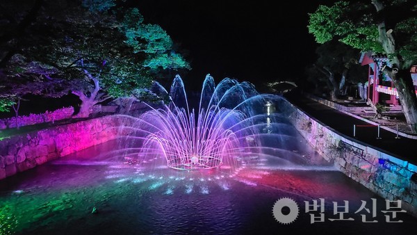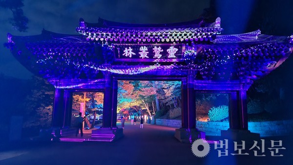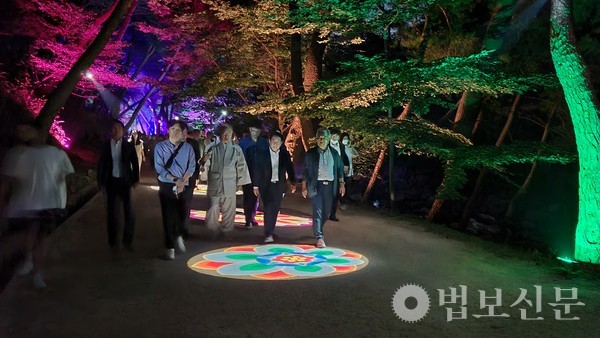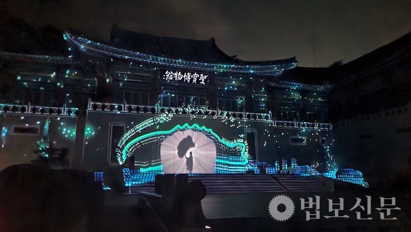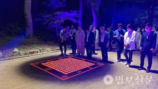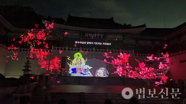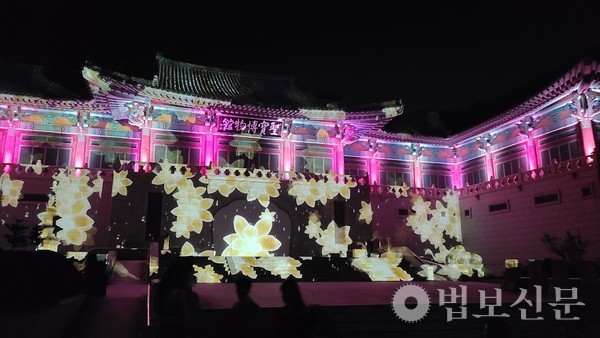 통도사(주지 현문 스님)는 9월16일 경내 무풍한송로와 성보박물관 일대에서 ‘2022 세계유산 통도사 미디어아트 사업 - 화엄 세계로의 초대’를 개막했다. 제11호 태풍 힌남노의 경남 상륙에 따라 개막 일정이 한 차례 연기된 가운데 이날 본격적인 막을 올린 통도사 미디어아트는 오는 10월3일까지 매일 오후7시부터 9시까지 진행된다.