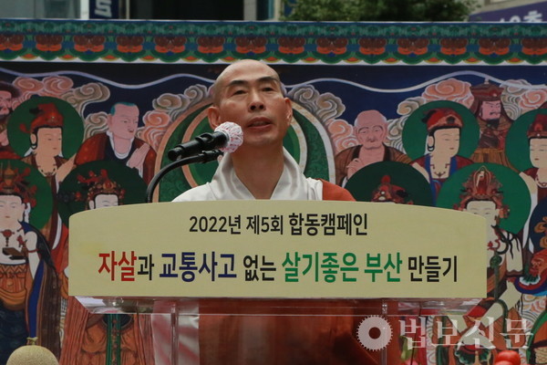 부산불교교육대학 학장 범혜 스님도 “우리 사회의 어둠과 아픔을 간직한 분들을 위로하고 부산의 높은 교통사고율과 자살율을 낮추기 위한 자리”라며 “불자들이 앞장서서 주위의 가까운 분들에게 먼저 ‘괜찮니’라고 질문하고 들어주고 연결하는 존재가 되어 주길 바란다”고 강조했다.