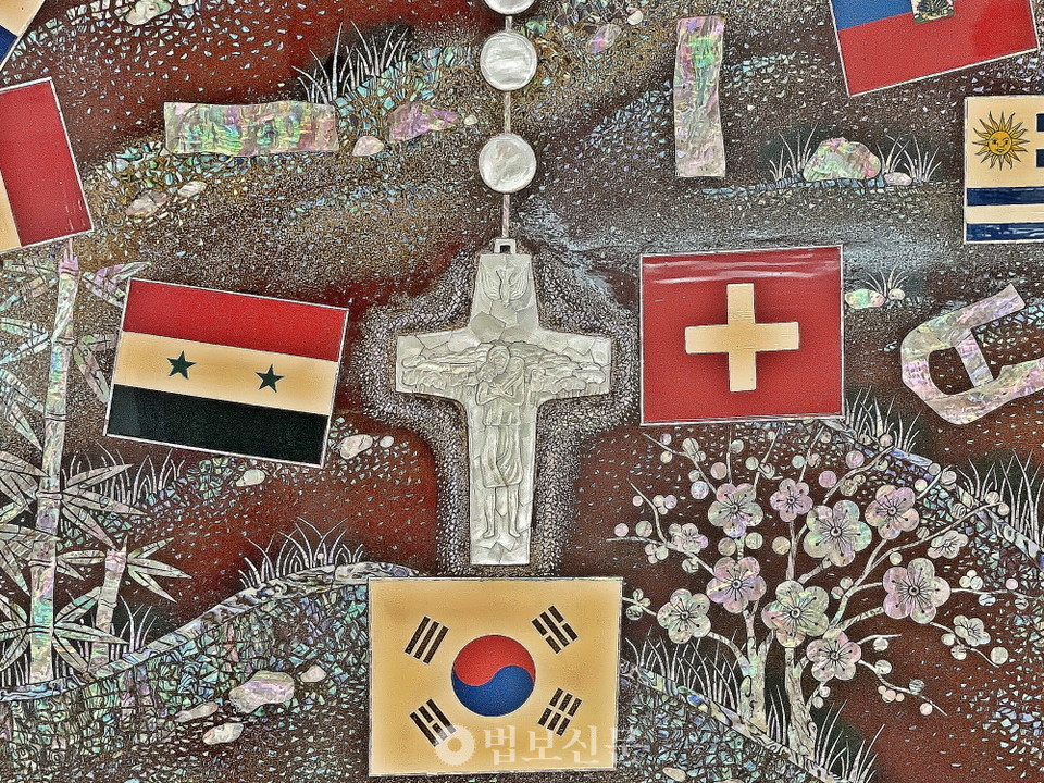 법보신문이 10월7일 서소문성지 역사박물관에 문의하자 “그림 속 문양이 법계도인지 아닌지는 알 수 없다”며 “이 칠화는 2018년 청와대 사랑채에 전시한 뒤 기증받았을 뿐이다”고 답했다. ‘연합뉴스’(2015년 10월22일자)에 따르면 이 작품의 기획자인 최기복 신부는 법계도가 배치된 그림 오른편을 두고 “강강술래를 상징적으로 표현한 묵주를 중심으로 태극기와 6·25전쟁 당시 한국을 도운 국가의 국기를 그려넣어 통일에 대한 염원과 함께 모든 인류가 하나가 되어 하늘에 올라가야 한다는 메시지를 표현했다”고 주장했다. 한국불교의 대표적 상징체계인 법계도를 버젓이 그려넣고도 법계도가 아니라 강강술래라는 것이다.