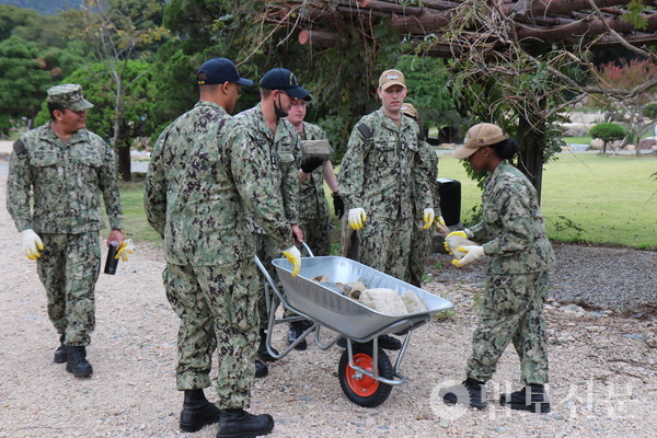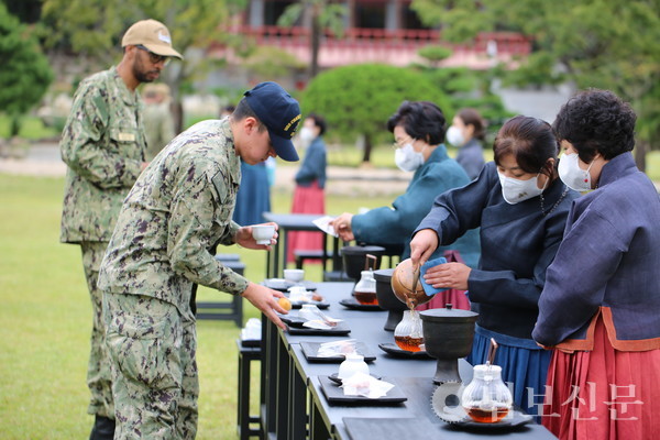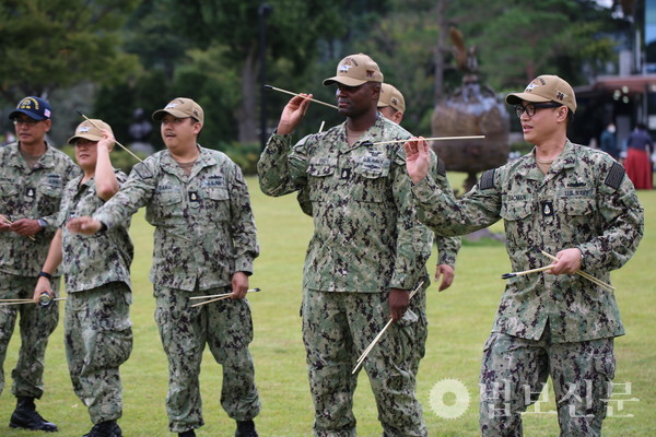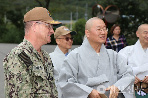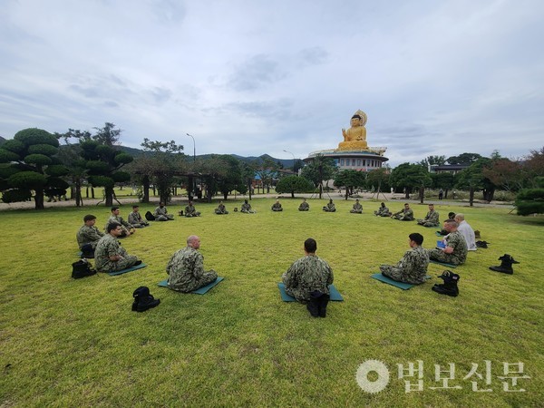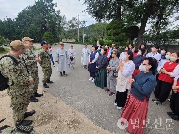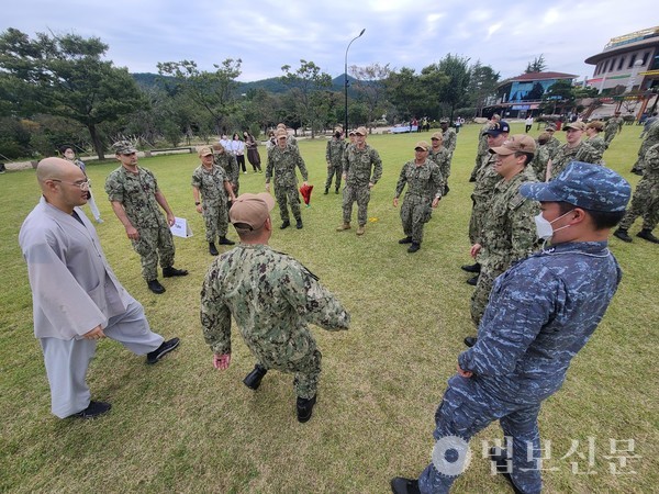 특히 홍법사는 발우공양으로 사찰음식을 선보인 데 이어 다도, 참선 등을 처음 접하는 미 해군 장병 누구나 쉽게 경험할 수 있도록 진행해 호응을 얻었다. 이밖에도 홍법사 잔디마당에서 제기차기, 투호 등 한국 전통 놀이를 체험하는 장도 마련됐다. 해군 장병들은 체험 행사를 마친 뒤 경내 정비에 동참하며 홍법사 신도들의 환대에 고마움을 전했다.