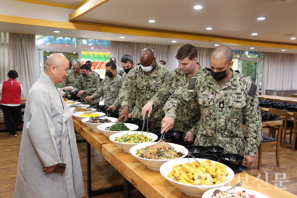 미 항공모함 로널드 레이건호의 해군 장병들이 영축총림 통도사를 방문하고 부산 홍법사에서 불교문화를 체험하는 시간을 가졌다.
