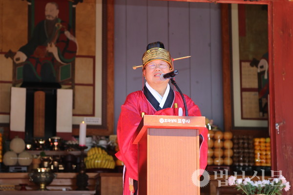 표충사 주지 진각 스님도 인사말에서 “청초한 가을날 원근 각지에서 참석해주신 여러 스님과 불자 여러분 그리고 오늘의 향사를 위해 정성을 다해 의식을 진행해 주신 성균관유도회원과 밀양시 모든 관계자께 감사드린다”며 “대사의 가르침을 새기는 이 소중한 법석이 종교 화합 나아가 우리나라의 소통과 발전에 기여하는 장으로 지속되길 바란다”고 취지를 전했다.