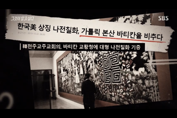 그런 그는 법계도를 왜곡한 나전칠화를 통해 명예 회복을 꾀한 것으로 보인다. 2014년 프란치스코 교황의 방한과 한국 순교자 124위 시복을 기념해 서울대교구 ‘기념 작품 제작 추진위원회’에서 업무를 총괄하며 문제의 이 칠화를 만든다. 결국 바티칸 특별전 전시를 추진했고 교황청 기증에도 성공했다.