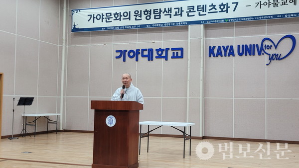 사단법인 가야문화진흥원(이사장 도명 스님)·동명대 인도문화연구소(소장 장재진)·사단법인 한국인도학회(회장 최종찬)는 10월15일 김해 가야대 대강당에서 ‘제7회 가야문화 원형탐색과 콘텐츠화 학술대회’를 개최했다. 김해시 후원으로 마련된 이날 행사는 ‘가야불교에 대하여’를 부제로 가야사에 대한 접근을 ‘가야불교’에 중점을 두고 본격적인 연구와 토론의 장을 전개했다.