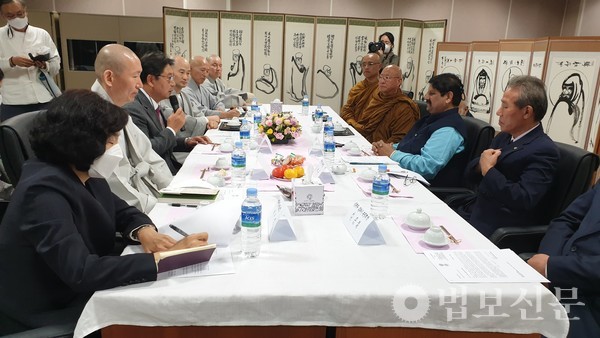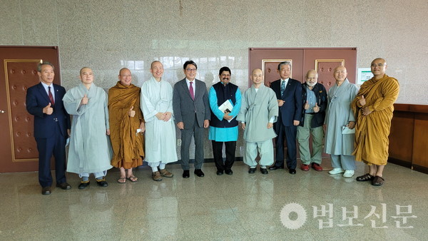 이날 학술대회에 앞서 김해시와 인도의 문화 교류를 위한 환담회가 마련됐다. 이 자리에는 가야문화진흥원 이사장 도명, 인도 부다가야 국제수행학교장 붓다팔라, 가야문화진흥원 초대 이사장 인해, 가야불교연구소장 지원 스님, 홍태용 김해시장, 아시시 바바 인도불교연구소장, 김재곤 가락국 시조대왕 숭선전 사무국장, 김종철 가락김해시종친회 삼현파 회장 등이 참석했다. 이 자리에서 참석자들은 “2000년 전 김수로왕과 인도공주 허황옥의 인연을 통해 김해는 물론 한국과 인도의 우호를 더욱 깊이 할 것”을 약속했다.