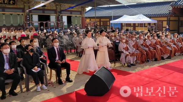 금정총림 범어사 주지 보운 스님도 인사말에서 “개산대재는 의상대사의 창건 이념을 새기고 범어사가 이어온 유구한 역사를 다시금 후대에 온전히 전승해나갈 것을 다짐하는 법석”이라며 “범어사 사부대중이 함께 미래에 계승할 정신을 새기고 실천하는 데 더욱 최선을 다할 것”이라고 전했다.