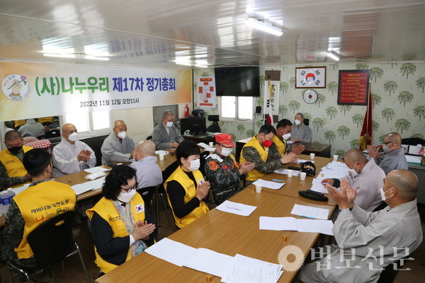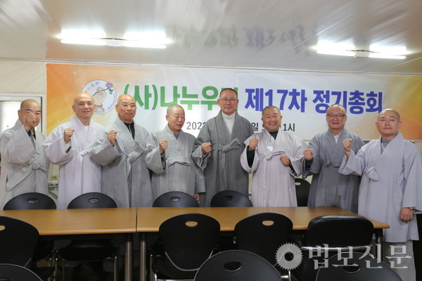 사단법인 나누우리(이사장 만우 스님)는 11월12일 경남 창원시 마산회원구 내서읍 중리 소재 회의실에서 ‘나누우리 제17차 정기총회’를 개최했다. 이날 나누우리는 2023년도 세입·세출 예산안을 확정하고 2023년도 사업계획안을 승인했다. 이날 총회에는 나누우리 이사장 만우 스님, 상임이사 자우 스님을 비롯해 이사 묵원(통영 보현사 주지), 진성(탑사 주지) 스님 등이 참석했다.