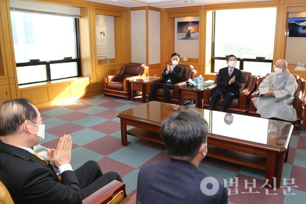 생명나눔실천 부산지역본부(본부장 심산 스님)는 1월17일 부산 국제신문 사장실에서 ‘생명나눔실천 부산지역본부·BNK부산은행·국제신문 공동기획 ‘난치병 환우에게 새생명을’ 캠페인 간담회’를 개최했다. 이날 세 기관은 지난 한 해 동안 환우 24명에게 총 2600만 원이 지원된 활동을 돌아보고 2023년에도 공동기획 캠페인을 지속적으로 전개하기로 뜻을 모았다. 이 자리에는 생명나눔실천 부산지역본부장 심산 스님과 배재한 국제신문 사장, 이기영 BNK부산은행 사회공헌홍보부 부장 및 각 기관 관계자 등이 참석했다.