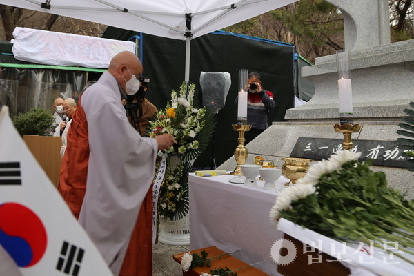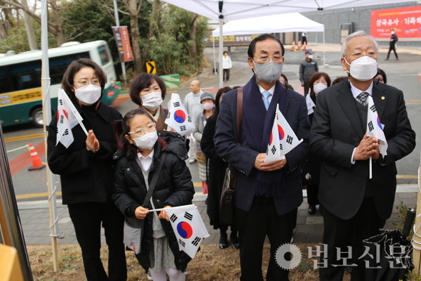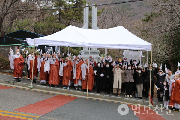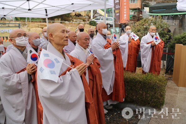 범어사 주지 보운 스님은 “이곳 ‘3·1운동 유공비’는 범어사 명정학교와 지방학림 학생들을 비롯해 범어사 스님들이 주축이 되어 일으켰던 부산의 만세운동을 기억하고자 건립됐다”며 “범어사는 우리 민족이 반드시 국가를 되찾고 독립을 이루겠다는 의지를 천명한 3·1운동의 숭고한 정신을 새기고 후대에 계승할 것”이라고 취지를 전했다.