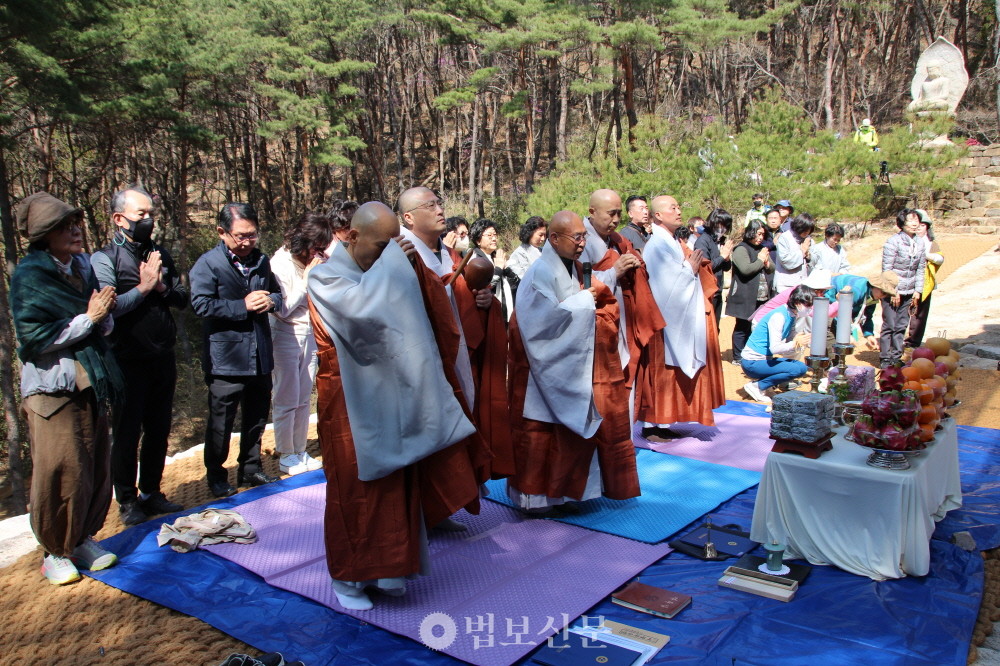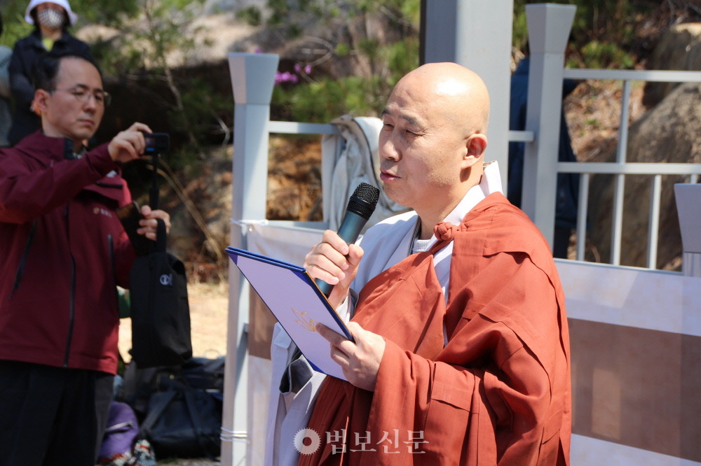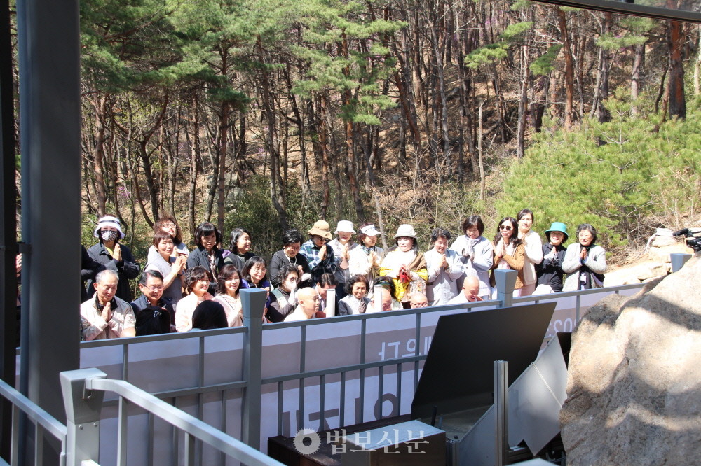 기도도감 본오 스님은 고불문을 통해 “열암곡 마애부처님을 바로모시는 일은 나를 일으켜 세우는 것이며 우리 모두의 본성을 회복하는 성스러운 불사”라며 “오늘부터 21일간 진행되는 간절한 기도를 통해 열암곡 마애부처님을 바로 모시어 희망의 미래천년이 펼쳐지기를 원한다”고 발원했다. 본오 스님도 “1167km 상월결사 인도순례 대장정을 회향하면서 그 원력과 마음이 사부대중 마음속에 한마음으로 결집되어 부처님도 바로 서고 우리들 모두의 삶도 가피를 입어 바로 서길 바란다”고 말했다.
