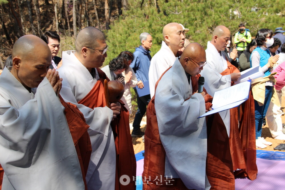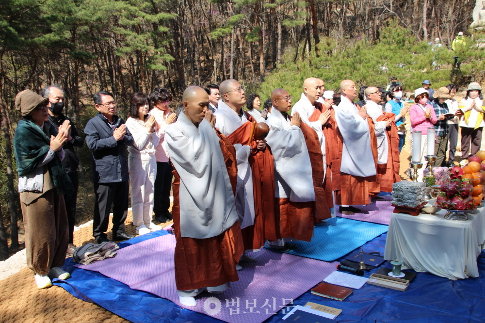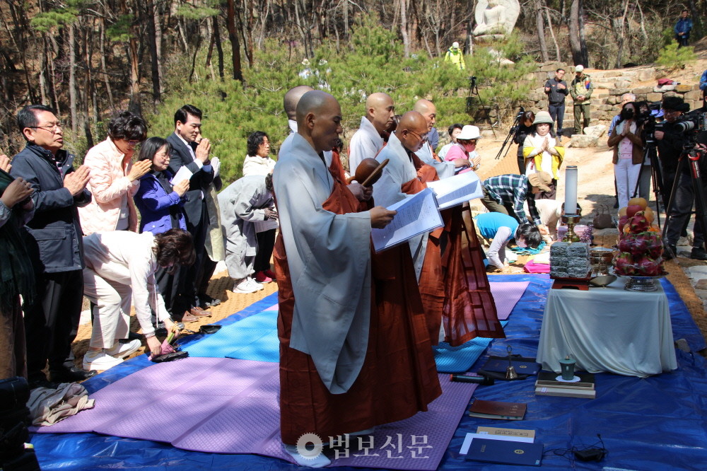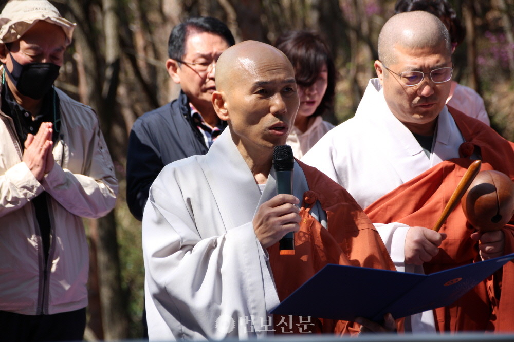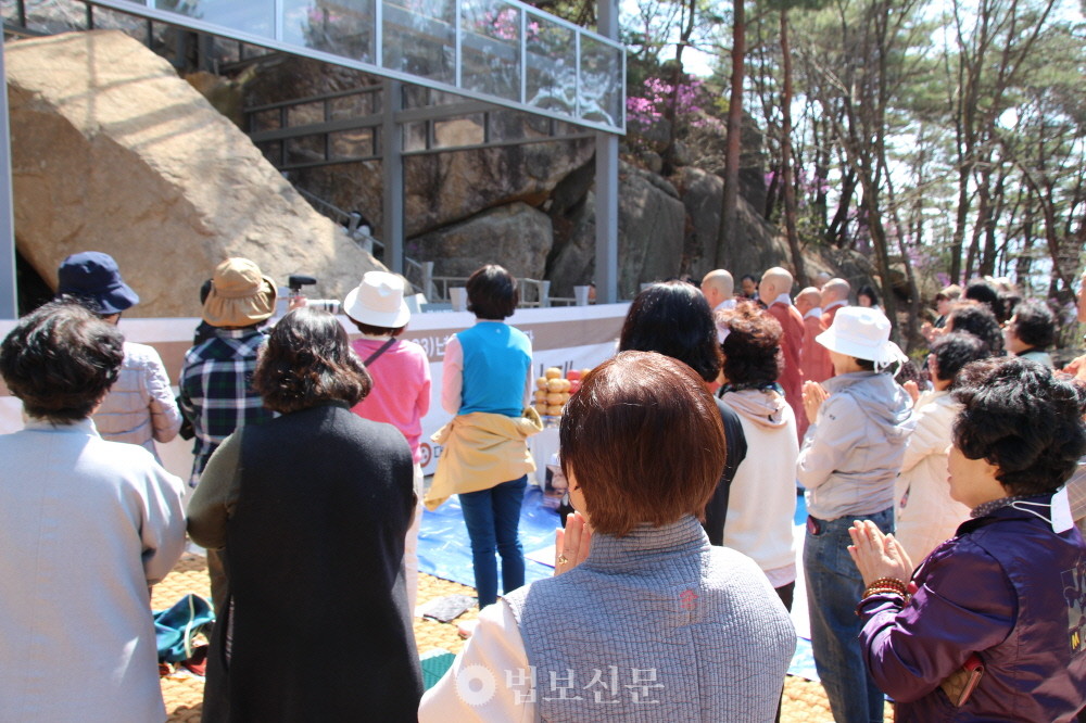 기도법사단장 환풍 스님은 축원문에서 “사바세계 남섬부주 대한민국 경주 남산 열암곡 청정수월도량에서 헌공발원 제자 동참대중은 이 인연공덕으로 제불보살님의 오묘한 가피력을 받아서 일체 재앙과 마음의 장애가 영원히 사라지고, 마음 속에 구하던 일 뜻과 같이 원만하게 이뤄지이다”라고 말했다.