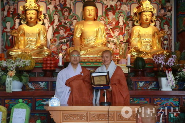 통도사 극락암 감원 관행 스님도 “은사 스님의 유지를 이어 명장장학재단과 어린이를 위한 꿈나무 공부방 등 지역을 위해 봉사하는 원오사의 선행에 기쁜 마음으로 이 자리에 함께하게 된다”며 “앞으로도 부산불교 나아가 한국불교를 위해 큰 역할을 펼치는 도량이 되리라 믿는다”고 격려했다.