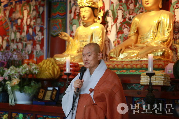 원오사 주지 정관 스님은 인사말에서 “지난 2008년 음력 3월 초하루 법회를 본 날을 지금도 잊을 수 없다. 은사 스님께서 도심 포교를 위해 이곳에 땅을 마련하셔서 문도 스님들께 돌려주셨고 사형 사제 스님들께서 저에게 배려해주셨기에 주지 소임을 맡게 된 것”이라며 “은사 스님께서는 저에게 도량을 맡기신 뒤에도 3년을 매일같이 오실 정도로 원오사를 참으로 좋아하셨다”고 회상했다. 이어 스님은 “스님께서는 포교 열심히 하는 것도 수행이라는 말씀을 종종 해주셨다”며 “초심 잃지 않고 포교할 수 있도록 응원해주신 사형사제 스님들과 보시해 주시고 같이 기도해 주신 신도님 그리고 지역 주민 여러분께 정말 감사하며 오늘의 불사 회향을 계기로 더 열심히 정진하고 포교할 것”이라고 발원했다.
