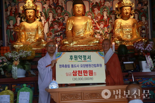 원오사는 중창불사 회향을 기념해 영축총림 통도사에 요양병원 건립불사 기금 3000만 원 보시를 약정했다. 통도사도 원오사의 중창불사 회향을 축하하는 표창패를 전달하며 포교 원력에 감사의 뜻을 전했다. 이밖에도 원오사 법요집을 봉정하며 여일한 정진을 발원했다. 법석에서는 최낙용 거사의 색소폰 연주, 청공중창단의 음성공양 등 축하 공연도 이어졌다.