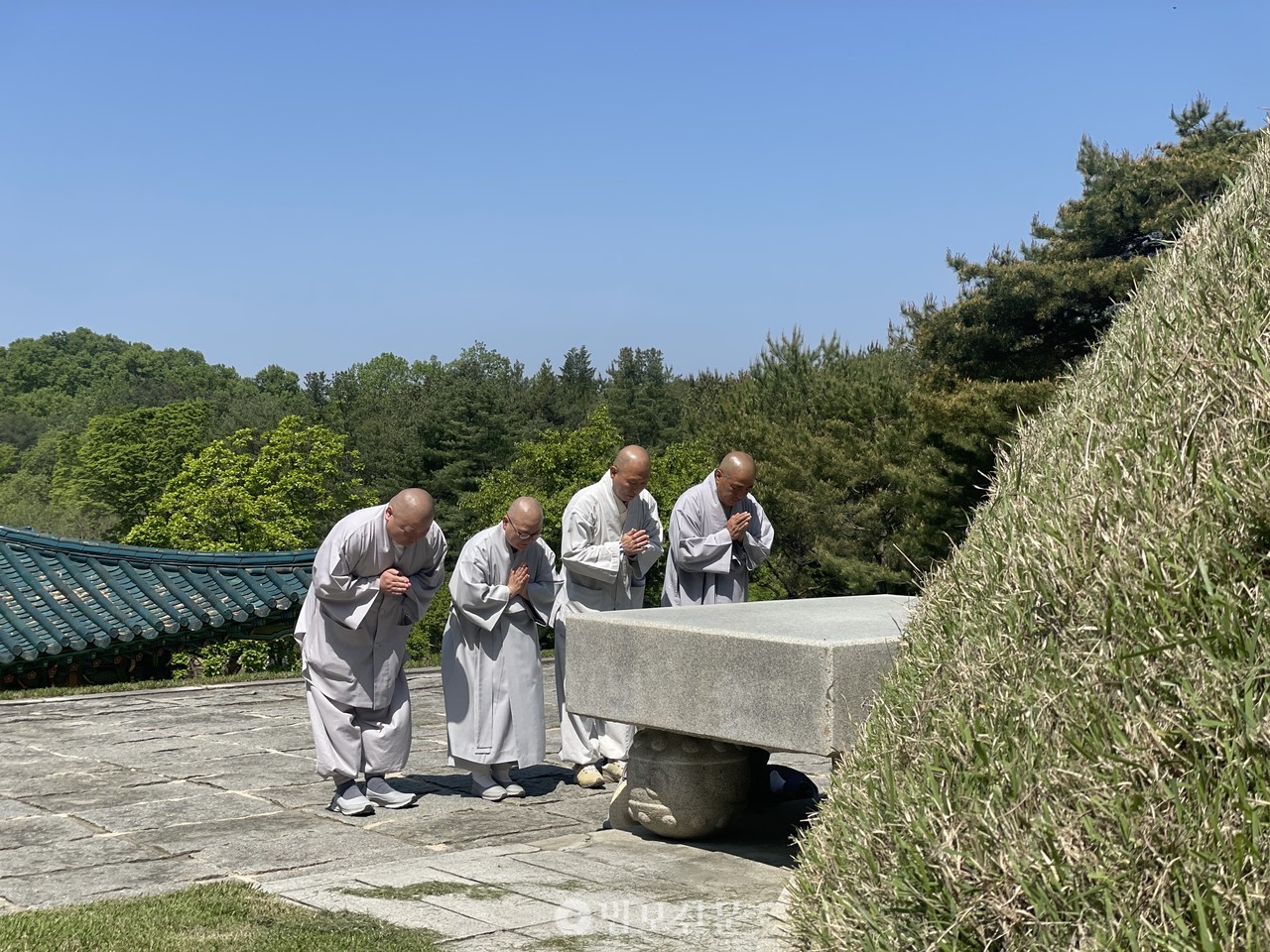 스님들은 이어 의총으로 올랐다. 전문 연구자에 따르면 칠백의총에는 의승 유해도 일부 묻혀 있다. 정덕 스님은 의총 앞에서 “나라와 백성을 위해 목숨까지 바쳤던 800여 스님들을 올바로 선양하지 못한 것은 우리 잘못”이라며 “잘 챙기지 못해 죄송하다”고 거듭 참회했다. 스님들은 의총 앞에서 한동안 발걸음을 떼지 못했다. 또 의총 오른편에 1970년대 세워진 ‘의병 순의비’를 보며, “무덤 왼편에도 역사를 제대로 기록한 ‘의승 순의비’가 있어야 한다”고 의견을 모았다.