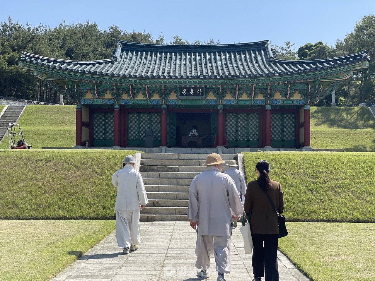 이어 스님들은 금산 전투에서 순절한 21위의 위패가 봉안된 ‘종용사’로 올라갔다. ‘종용사’는 1663년 현종이 사액한 명칭이다. 본래 1647년 건립됐다. 하지만 1940년 일제에 의해 전각이 헐렸다가 1952년 복원됐다. 이후 1971년 재단장을 거쳐 현 모습으로 바뀌었다. 이곳 역시 조헌 선생 선양이 강화된 것과 달리 영규대사와 의승의 공적은 아예 누락돼 있다.