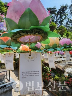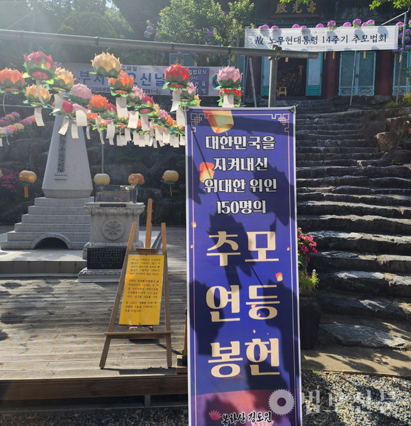 봉화산정토원은 5월23일 경내 수광전에서 ‘고(故) 노무현 대통령 14주기 추모법회’를 봉행했다. 특히 이날 추모법회에 이어 수광전 앞마당에서는 ‘대한민국을 지켜내신 위대한 위인 150명의 추모 연등 봉헌식’을 마련했다. 이날부터 부처님오신날까지 봉화산정토원 연등에 이름을 새긴 위인은 고구려와 왜에 잡혀 있던 신라 눌지왕의 아우들을 구해 온 충렬공 박제상(363~419), 정묘호란 당시 평안도에서 의병을 일으켜 적군을 토벌한 의병장 이립(미상~1627) 등 150명이다.