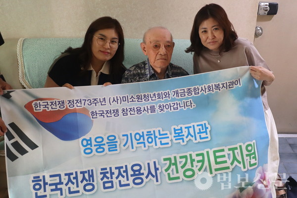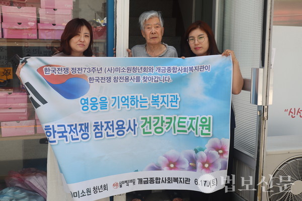사단법인 미소원 청년회(이사장 장유정, 청년회장 류강렬)는 6월17일 부산 개금종합사회복지관과 일대에서 ‘한국전쟁 참전용사 건강키트 지원’ 행사를 진행했다. ‘사단법인 미소원 청년회와 개금종합사회복지관이 한국전쟁 참전용사를 찾아갑니다’를 부제로 마련된 이번 행사는 호국보훈의 달을 맞아 미소원 청년회원들이 개금종합사회복지관에서 추천한 부산진구 거주 참전용사 7명에게 건강영양키트를 보시하며 호국 정신을 새기는 장으로 마련됐다.