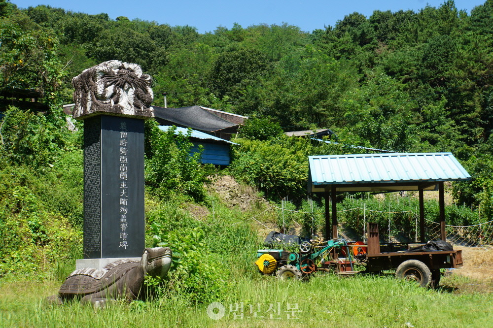 ‘영규대사묘’(충청남도 기념물) 일대 광경은 올해 5월 둘러본 ‘금산 칠백의총’(사적)의 정돈된 모습과는 사뭇 달랐다. 돌계단을 확인할 수 없을 정도로 수풀이 우거져 있었고, 묘소로 오르다 마주한 ‘기허당영규대사 순의실적비’는 마을 주민의 경운기 주차장(?)으로만 활용되고 있었다. 영정각엔 빗자루가 내던져 져 있는가 하면, 나무로 만든 제단에선 곰팡이가 코를 찌르는 듯한 냄새를 뿜어댔다.