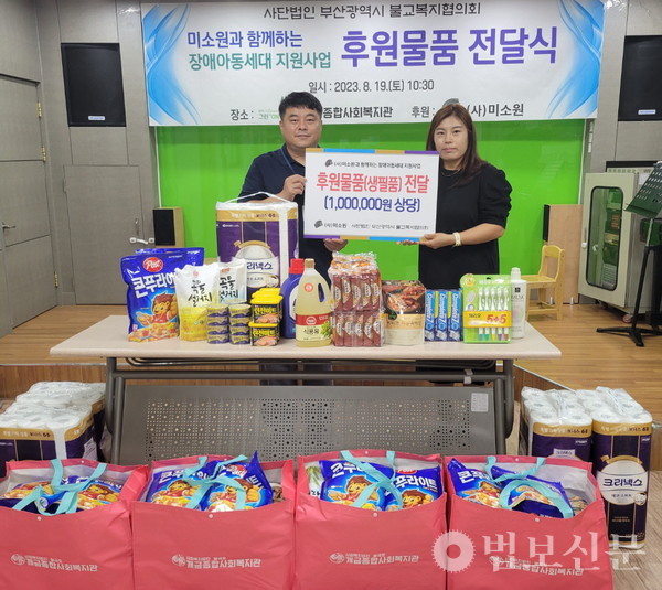 사단법인 미소원이 부산불교복지협의회를 통해 장애아동세대에 생필품을 지원하며 건강한 삶을 기원했다.