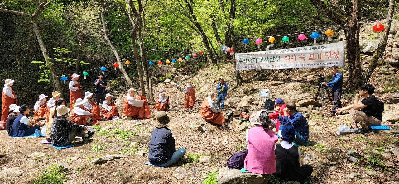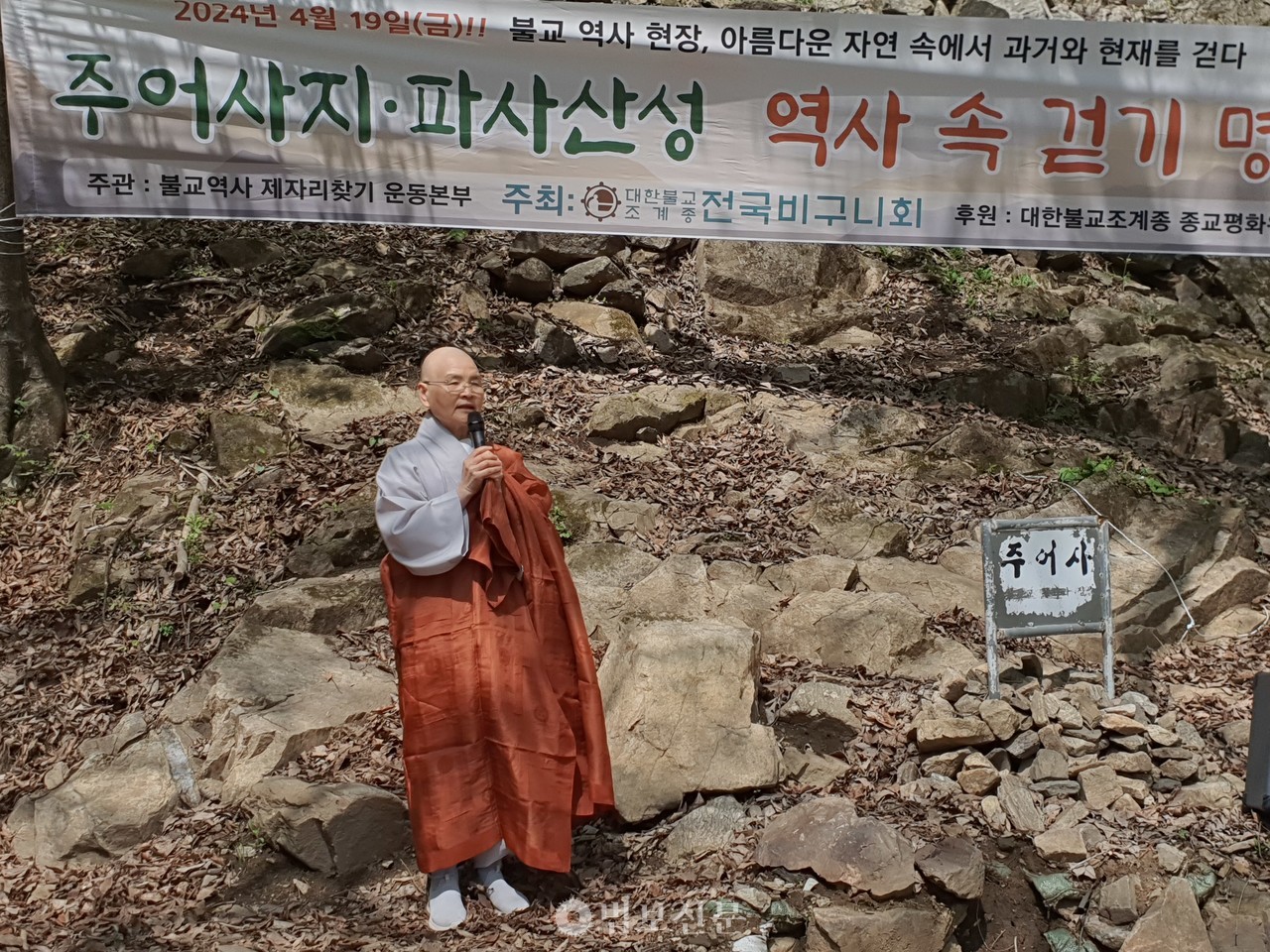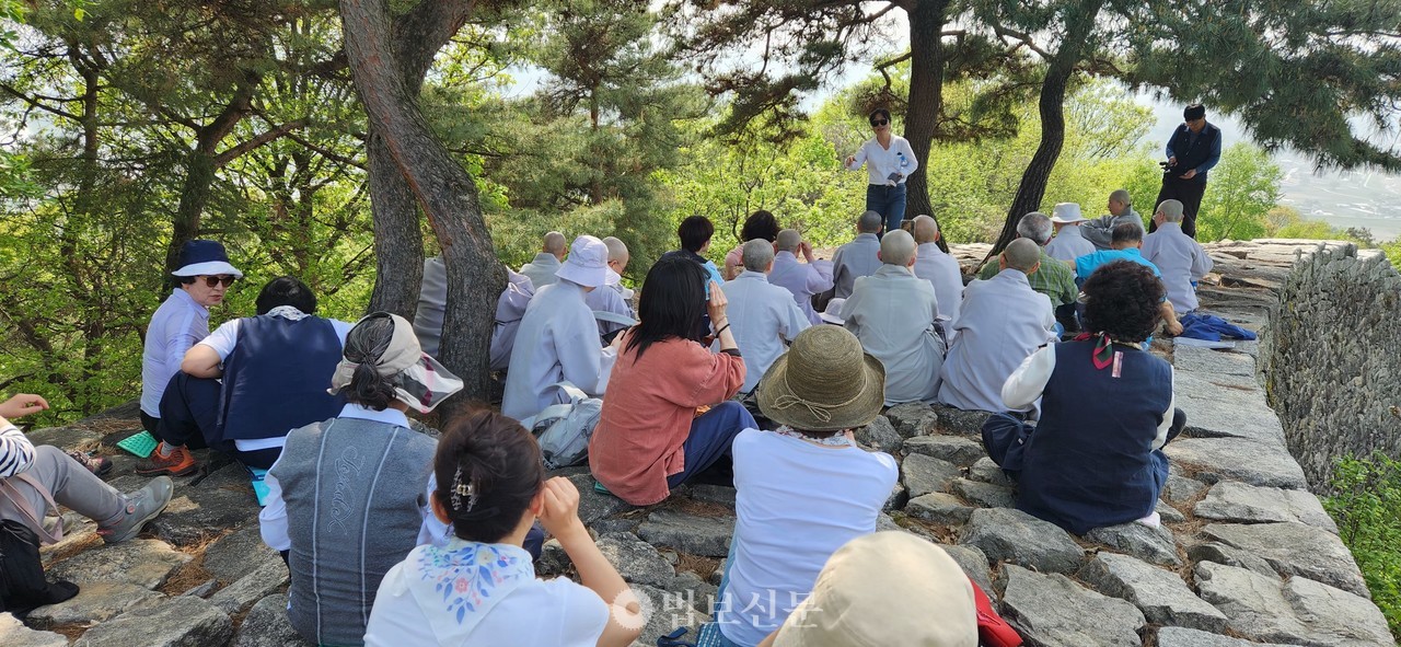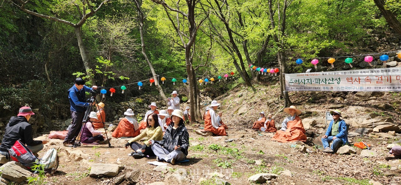 전국비구니회(회장 광용 스님)가 불교역사제자리찾기운동본부와 4월 19일 주어사지·파사산성에서 역사 속 걷기 명상을 개최했다. 답사에 동참한 사부대중 52명은 현장에서 명상을 하며 주어사지와 파사산성이 갖는 역사적 의미를 살피고 성찰의 기회를 가졌다.