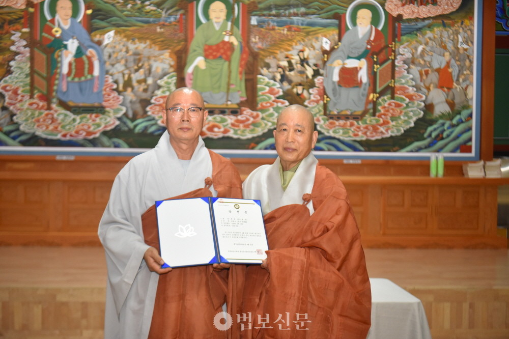 금산사 주지 후보에 선출된 화평 스님이 당선증 수여 직후 “은사(월주)스님의 유지인 ‘깨달음의 사회화’를 계승해 교구발전 이끄는 마중물 되겠다”고 다짐했다.