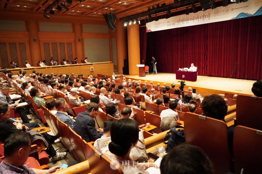 조계종 총무원장 진우 스님이 다섯 번째 선명상 아카데미에서 “슬픔도 기쁨도, 행복도 고통도 내가 만드는 것”이라며 양자역학 이론을 활용해 현상을 올바로 볼 수 있는 방법을 안내했다. 또 고락의 윤회를 해소할 방법으로 “있는 그대로 놓아버린다”는 ‘방하착’, 이른바 ‘놓음 명상’을 제시했다. 진우 스님은 7월 23일 서울 한국불교역사문화기념관 전통문화공연장에서 “놓아버리면 좋은 것도 싫은 것도 멈춘다”면서 “인과가 사라지고 마음이 편안해지면 행동과 생각이 저절로 정돈되고 마음이 청정해진다”고 강조했다. 특히 인식 대상에 좋고 싫은 감정이 덧붙는 원리를 알기 위해선 비교적 고요한 마음일 때 꾸준히 선명상을 연습해야만 한다고 설명했다. 또 9월 28일 광화문 일대에서 열리는 ‘국제선명상대회’에서 108가지 명상 방법에 대해 내놓겠다고 예고했다. 강의를 요약해 지면으로 전한다. 편집자
