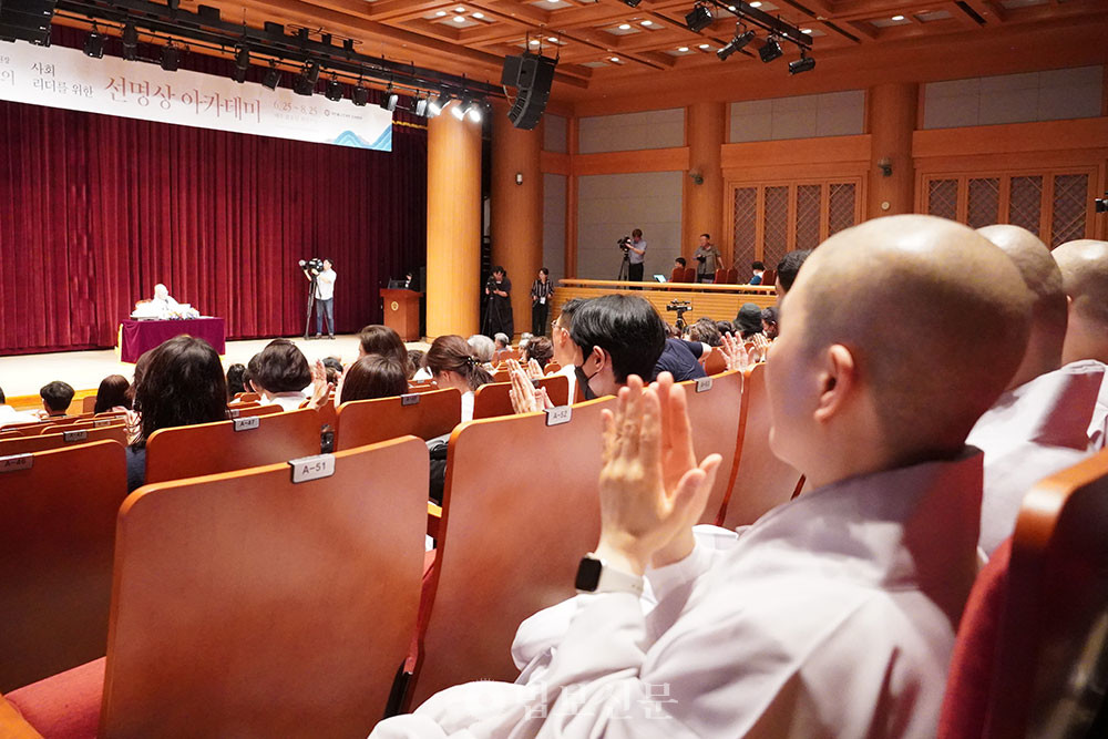 조계종 총무원장 진우 스님이 직강에 나선 선명상 아카데미 일곱 번째 강좌가 8월 20일 열렸다. ‘내 팔자 바꾸는 기가 막힌 방법’을 주제로 열린 이번 강의는 서울 한국불교역사문화기념관에서 열린 마지막 강의 현장이었다. 8월24~25일 공주 한국문화연수원에서 열리는 선명상 템플스테이를 앞두고 진우 스님은 지금까지 진행한 강좌의 핵심을 종합적으로 정리했다. 진우 스님은 결국 가장 중요한 것은 내가 느끼는 고락사의 감정이며 이런 감정이 인연 연기를 지속적으로 만들어 내지 않도록 이를 다스려야 하며 가장 쉽고 빠른 방법이 선명상임을 거듭 강조했다. 진우 스님의 일곱 번째 강의를 요약했다. 이날 강의에는 청주에 위치한 공군사관학교 불자회 생도들이 자리를 함께했다. [편집자]