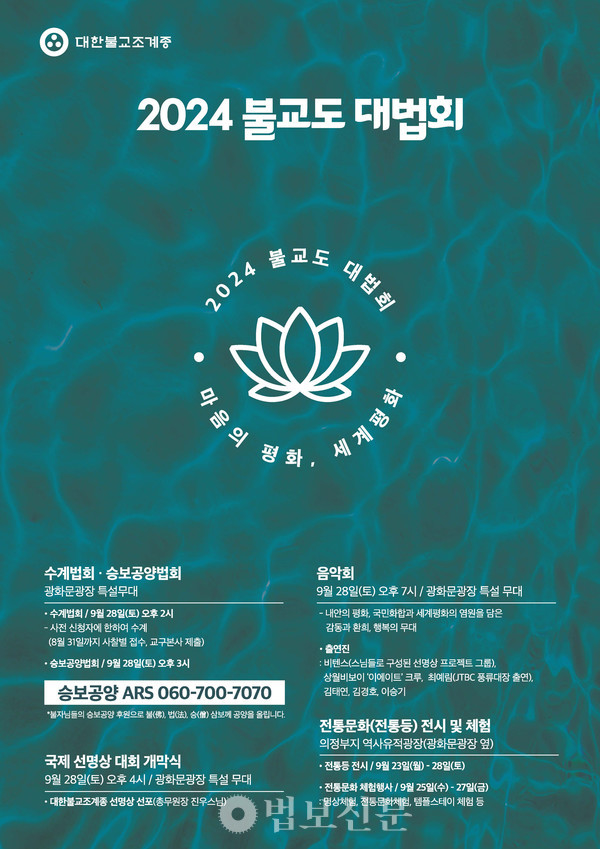 조계종(총무원장 진우 스님)이 9월 28일 광화문광장 일대에서 한국불교 1700년의 지혜를 담은 K-선명상을 세계에 알리는 2024 불교도 대법회(국제선명상대회)를 봉행한다.