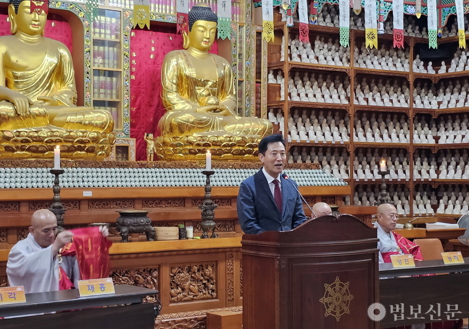 오세훈 시장은 8월 22일 서울 한국불교전통문화전승관에서 열린 ‘불기 2568년 태고종 전국 승려·전법사 연수교육’ 입재식에 참석해 직접 사과의 뜻을 전했다. “이 자리에 많은 스님들이 함께한다는 이야기를 듣고 인사를 드리기 위해 참석했다”는 인사로 말문을 연 오 시장은 “이승만 대통령을 기리는 기념관을 송현열린광장에 건립하는 것과 관련한 논의가 진행되는 기간이 있었다”며 “이로 인해 스님들을 불편하게 한 것에 대해 죄송스럽게 생각한다”고 머리를 숙였다.