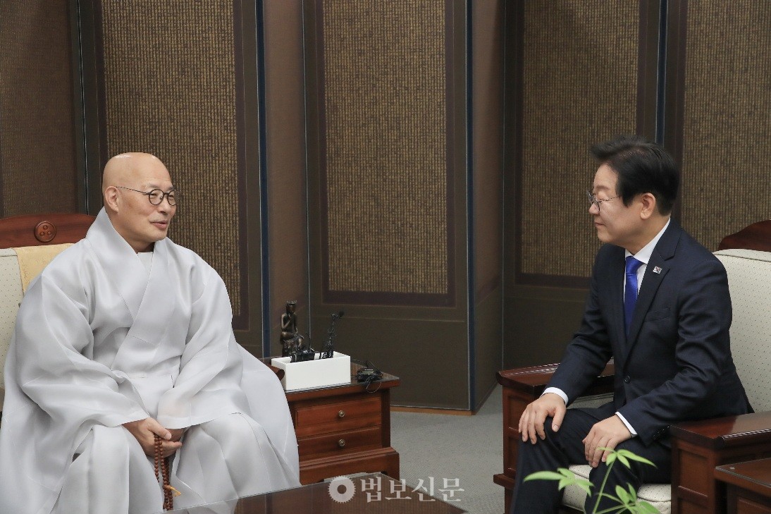 이재명 대표는 9월 15일 서울 한국불교역사문화기념관 4층 접견실에서 총무원장 진우 스님을 예방하고 “의료대란 이해관계를 조정해야 하는데 대화, 타협이 아닌 충돌만 발생해 모두가 피해를 보고 있는 상황”이라며 “이럴 때 종교계 역할이 매우 중요하다. 종교계 어른들이 나서준다면 충돌 양상을 완화하리라 본다. 윤활유 역할 필요하다”고 말했다.