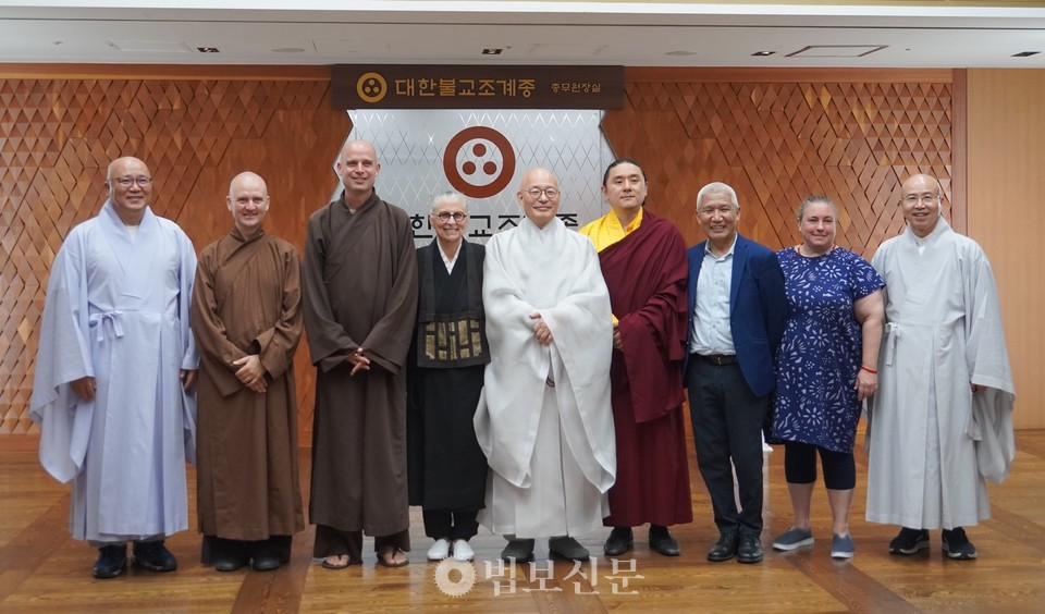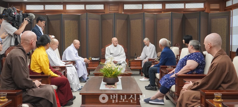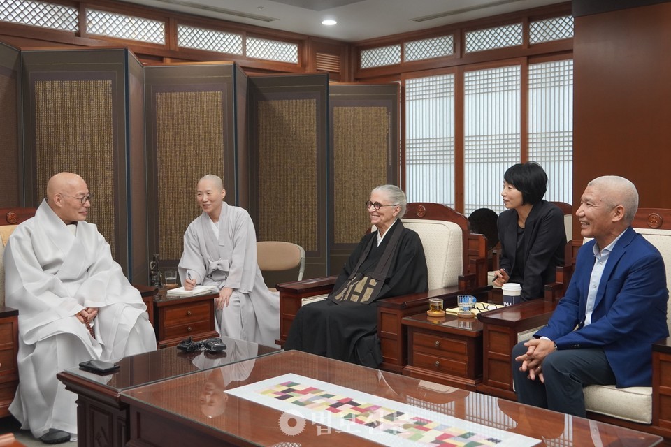 총무원장 진우 스님은 9월 26일 한국불교역사문화기념관 4층 접견실에서 ‘2024 국제선명상대회’에 초청받은 명상지도자 조시 로안 할리팩스, 툽텐 진파, 팝루 스님, 직메 린포체의 예방을 받았다.