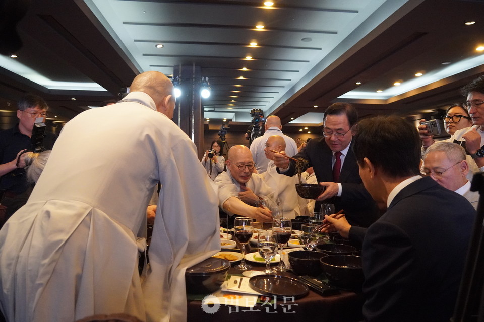 한편, 참석자들은 사찰음식 명장 정관 스님이 준비한 발우공양 만찬을 즐겼다. 정관 스님은 발우공양을 “자연의 생명을 담은 수행자의 밥상”이라고 소개하며 발우공양의 의미와 방법을 전하고 ‘공양게송 합송’ 시간을 가졌다.