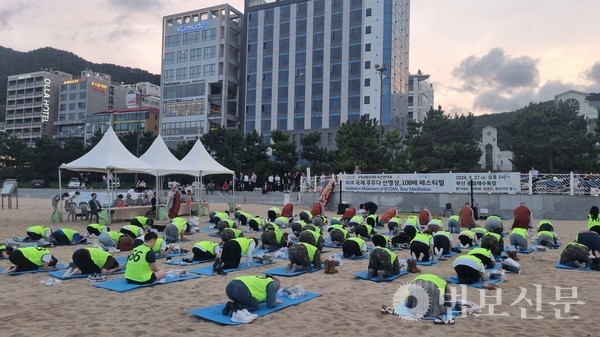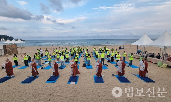 재단법인 명경문화재단·문화예술사단법인 쿠무다·대운사(이사장·주지 주석 스님)는 9월27일 부산 송정해수욕장 일원에서 ‘조계종 국제선명상대회 부산전야제 제1회 쿠무다 선명상·108배 경진대회(Meditation Movement of Busan’를 개최했다. 이 행사는 2024 국제선명상대회 본행사를 하루 앞두고 축하와 기원의 뜻을 담아 마련됐다. 특히 한국불교 전통 수행법인 108배를 통해 불교 수행의 가치를 공유하고 문화와 명상이 어우러진 다양한 공연과 체험을 통해 선명상의 대중화를 염원했다.