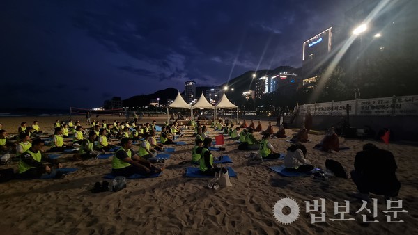 국제선명상대회의 성공 개최를 기원하는 의미를 담아 108배와 선명상이 함께하는 전야제가 부산 쿠무다 문화재단 주관으로 송정 해수욕장에서 열렸다.