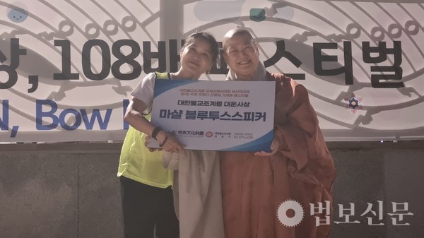 한편 이 자리에는 쿠무다 이사장 주석 스님을 비롯해 금정총림 범어사 사회국장 법진 스님 등 스님들과 강관범 53보병사단 사단장, 임말숙 부산시 시의원, 박희연 부산시 문화예술과장, 김수현 영산대 부총장 등 내빈들도 참석해 108배 참가자들을 격려했다.