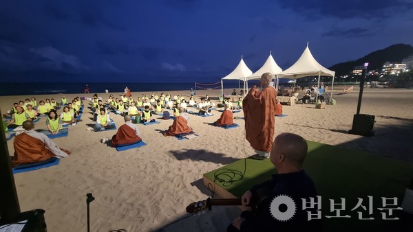 쿠무다 문화재단 이사장 주석 스님은 “서울 광화문에서 열릴 국제선명상대회를 하루 앞둔 오늘 저녁 하늘의 노을과 송정해수욕장의 파도 소리가 함께 108배를 올리는 매 순간이 곧 명상”이라며 “이 자리에 계신 모든 분과 함께 국제선명상대회의 성공 개최를 기원한다”고 취지를 전했다.