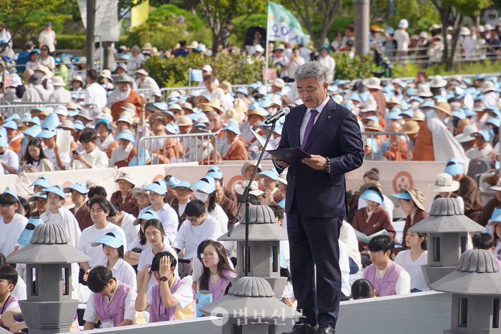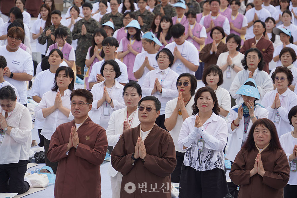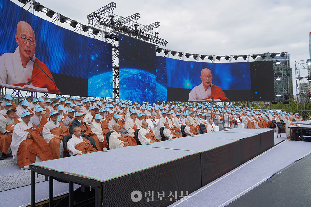 3만5000여 명 불자들이 한 목소리로 고하는 발원문이 광화문광장을 가득 메웠다. 참석자들은 발원문을 통해 생명존중과 상생의 가치를 되새기며, 개인과 사회의 평화를 염원했다.
