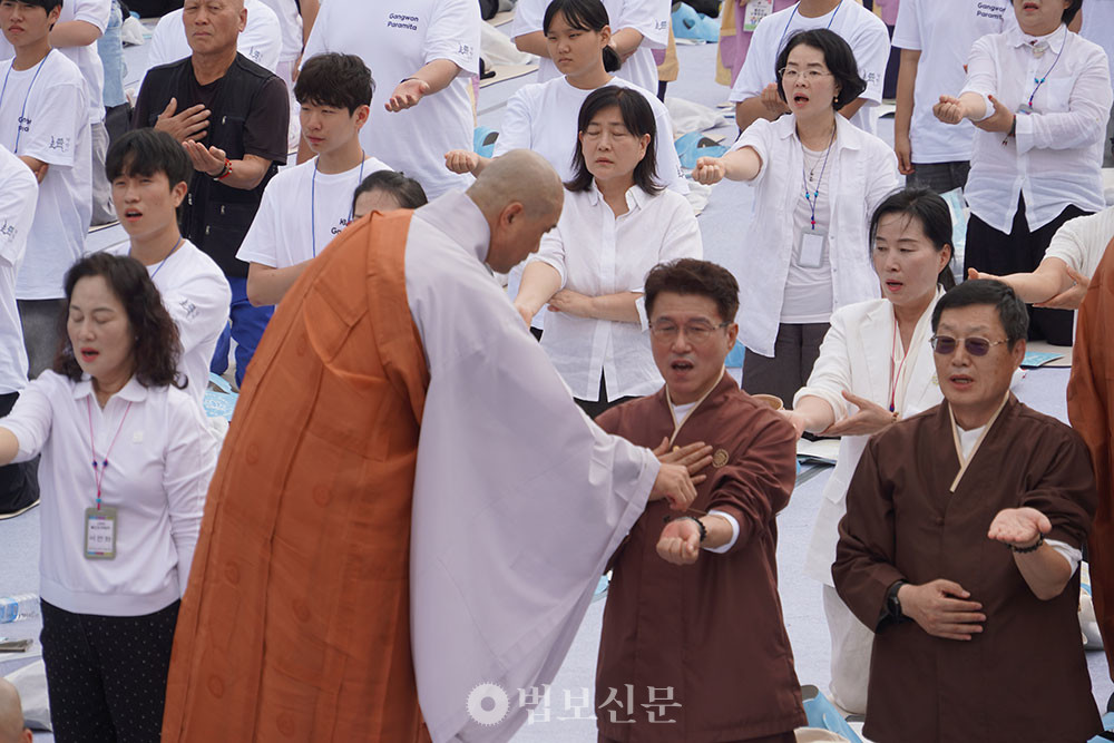 수계 후 진우 스님은 법어를 통해 “오늘 설한 오계는 우리 국민이 다함께 지켜나가자는 국민오계”라며 “국민 한사람 한사람이 오계를 지켜 나갈 때, 온 국민의 마음은 평안해 질 것이며 밝고 맑은 사회, 지혜가 샘물처럼 솟아나서 세계 최고의 국민, 최강의 국가가 될 것”이라고 축원했다.