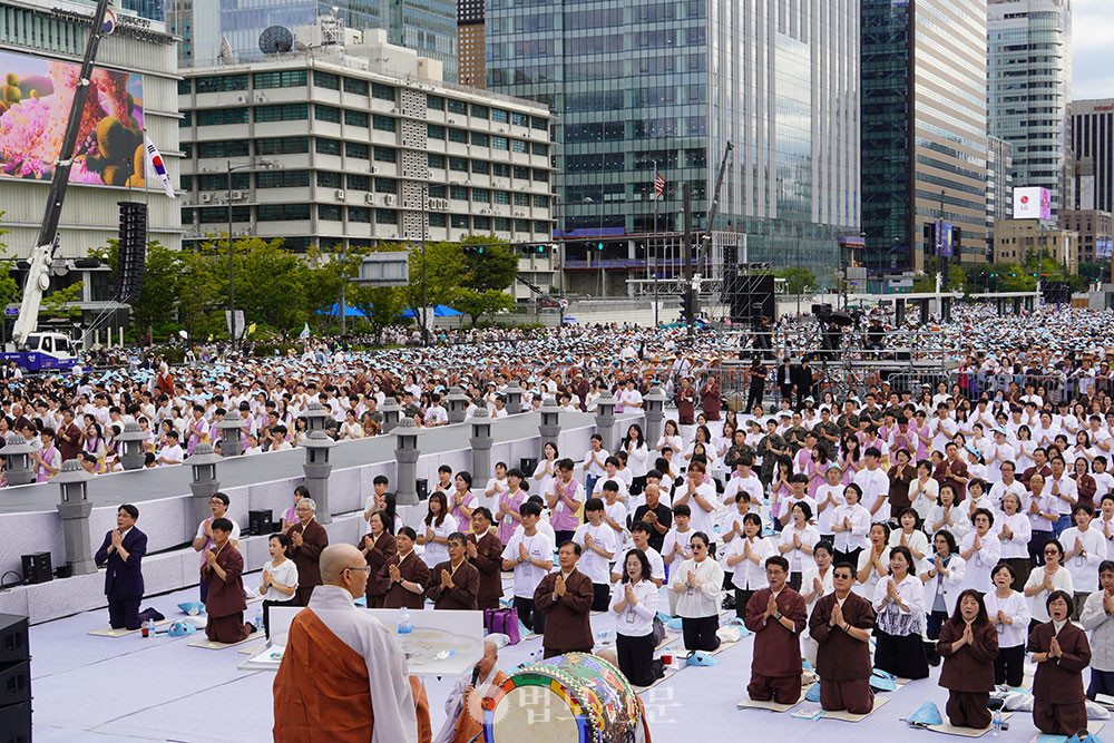 광화문 앞에 세워진 메인무대를 중심으로 광화문광장을 가장 메운 3만5000여 명의 불자들은 수계와 공양, 그리고 선명상을 통해 우리사회에 구현할 수 있는 평화와 질서를 보여주려는 듯 시종 차분하고 질서정연한 모습으로 행사에 임했다.